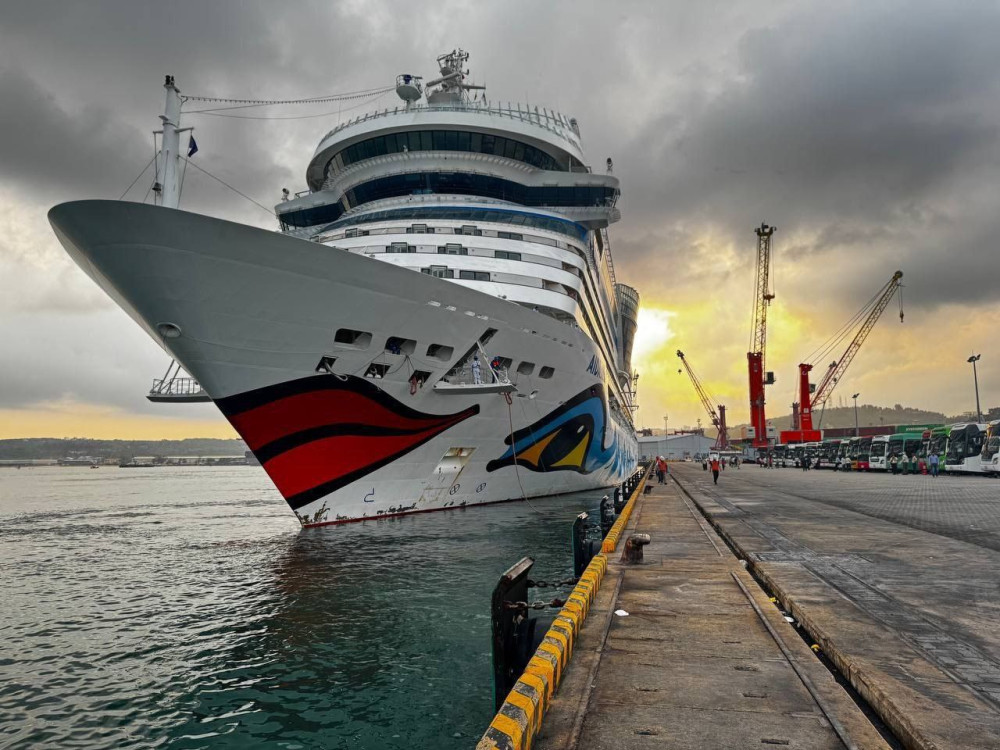 A tourist ship named AIDA STELLA, sailing under the flag of Italy, docked at the Sihanoukville Autonomous Port in Preah Sihanouk province for a day-long visit on Feb. 15.