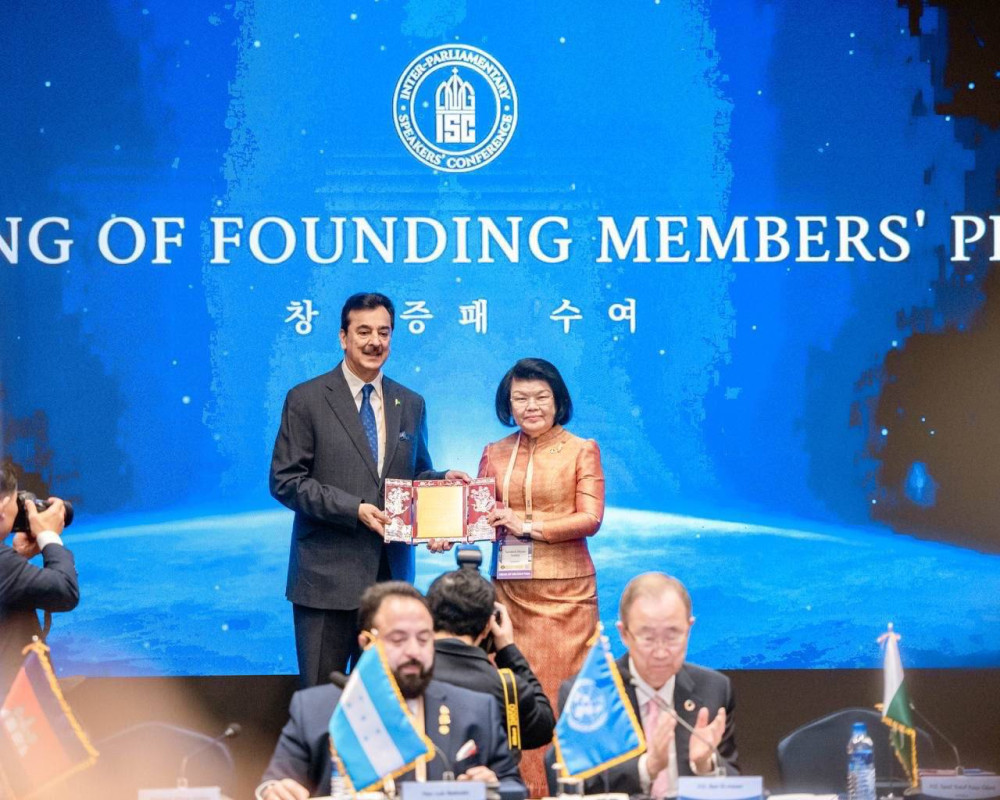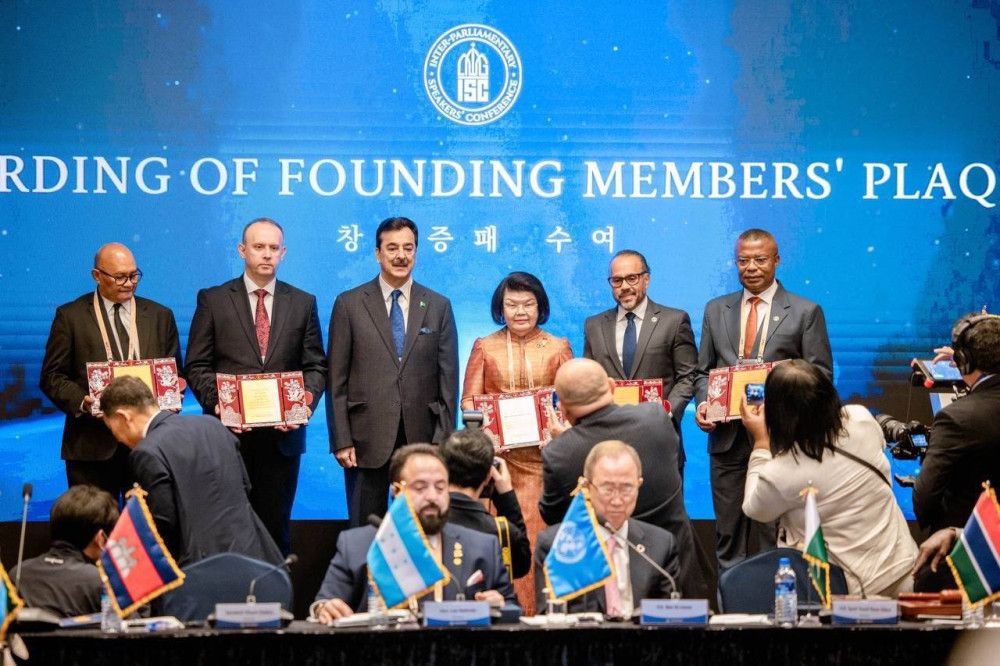 During the event, Samdech Khuon Sudary, representing Samdech Techo Hun Sen, was awarded the ISC founding member plaque in acknowledgment of the Cambodian Parliament's significant contributions to global peace and prosperity.