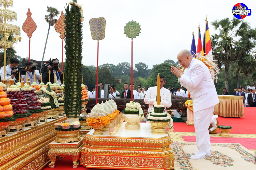 A Royal Prayer Ceremony for the Prosperity of the Kingdom was organised in front of the sacred Angkor Wat Temple in Siem Reap province this morning under the royal presidency of His Majesty Preah Bat Samdech Preah Boromneath Norodom Sihamoni, King of Cambodia.