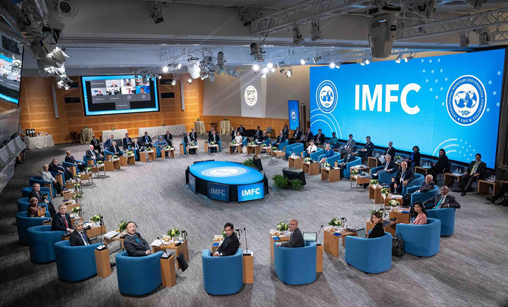 IMF Managing Director Kristalina Georgieva and Saudi Arabian Finance Minister Mohammed Aljadaan co-chair a meeting of the IMF’s International Monetary and Finance Committee in Washington Friday (Photo: IMF)