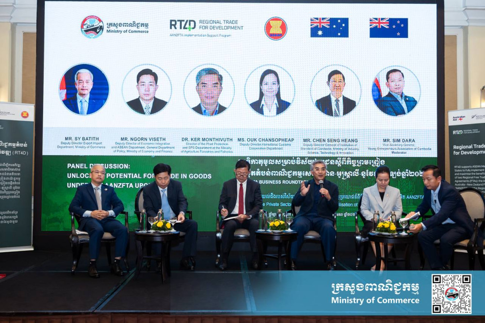 The Business Roundtable on “Reaping Benefits from ASEAN-Australia-New Zealand Free Trade Area (AANZFTA) Upgrade” was organised on April 28 in Phnom Penh to provide an opportunity for businesses to share experiences around export and import, accessing to the Australian and New Zealand markets.