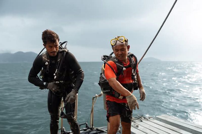 Previously, these divers faced significant risks due to unsafe diving practices and equipment, including decompression sickness and drowning. Now, equipped with proper training, they work daily to install artificial fish shelters, helping protect marine ecosystems from destructive bottom-trawling activities.