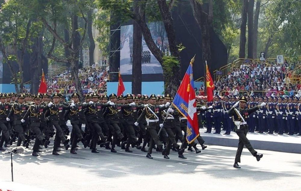 The grand parade, held in Ho Chi Minh City on April 30, featured for the first time the joint presence of military contingents from China, Laos, and Cambodia, alongside around 13,000 Vietnamese civilians, officials, and service members. The Cambodian delegation comprised 119 personnel from the Gendarmerie Command, representing the RCAF in army uniform.