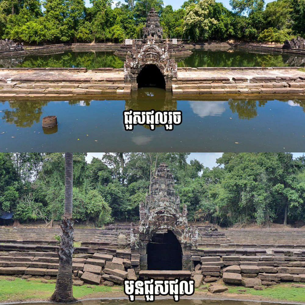 Mr. Ich Sreng, a technical staff member, noted that the drainage system had suffered from age-related deterioration, water erosion, and the growth of plants within its structure. This restoration follows previous efforts to rehabilitate two other drainage structures on the eastern and northern sides of Neak Poan Temple.