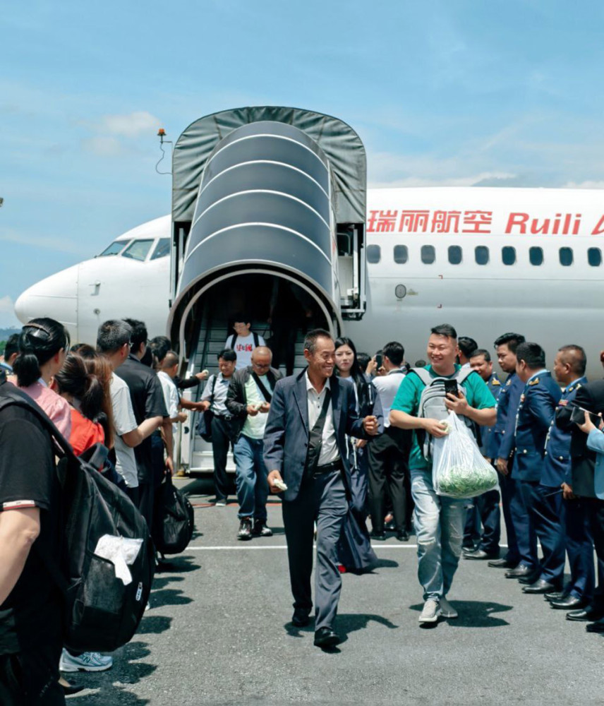 A total of 126 Chinese tourists arrived at Preah Sihanouk International Airport on May 18 aboard flight DR5031, where they were warmly welcomed by provincial authorities and accompanied by a traditional Chhay Yam dance.