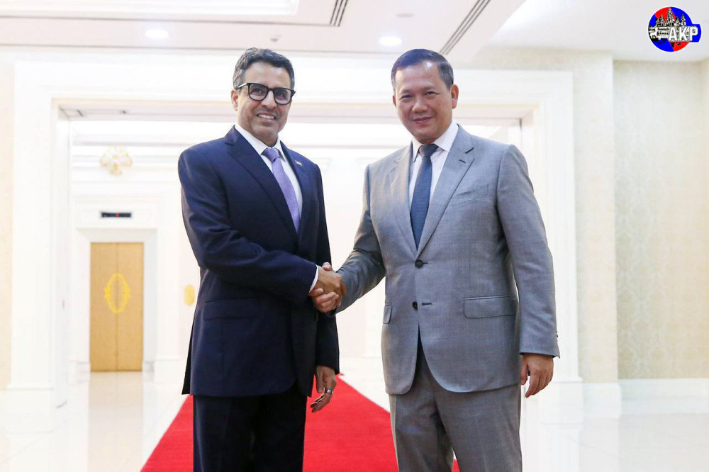 During a courtesy call on Samdech Moha Borvor Thipadei Hun Manet, Prime Minister of the Kingdom of Cambodia, this morning at the Peace Palace, H.E. Obaid Saeed Obaid Bintaresh Aldhaheri announced that a delegation from the UAE Chamber of Commerce will visit Cambodia to organise a trade expo aimed at promoting investment and trade between the two countries.