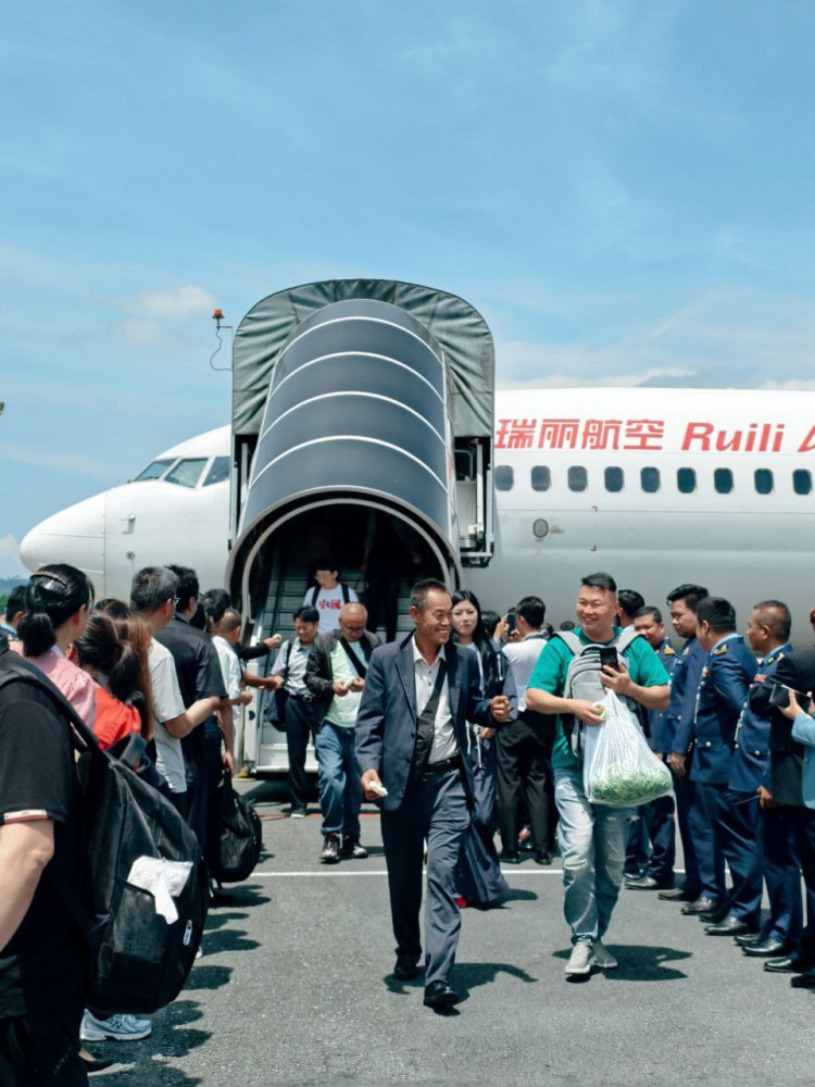 Ruili Airlines' Flight DR5031 carrying 126 Chinese tourists lands at Preah Sihanouk International Airport on May 18, 2025
