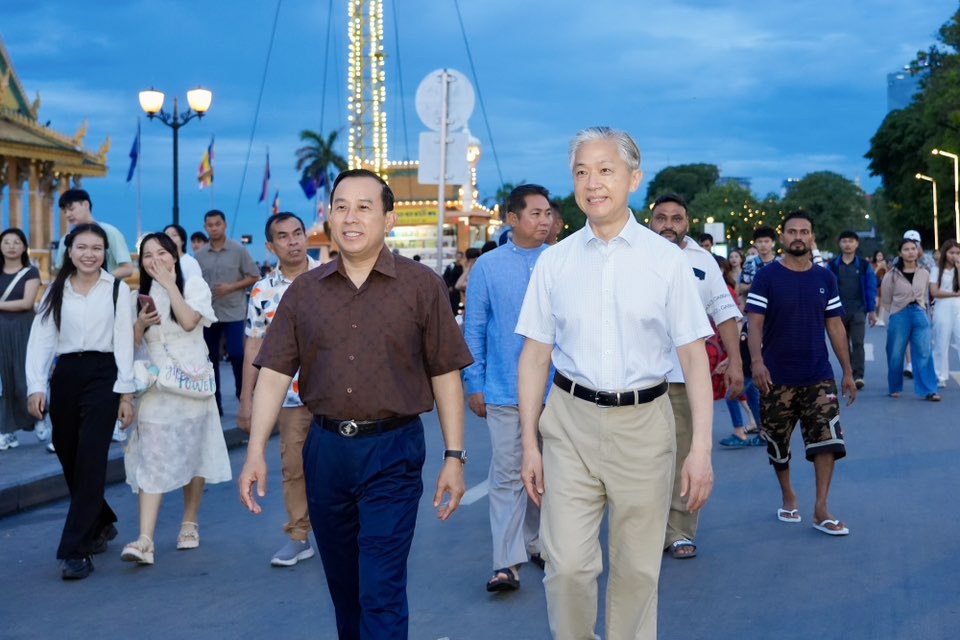 Chinese Ambassador Helps Promote Vibrant Walk Street in Phnom Penh