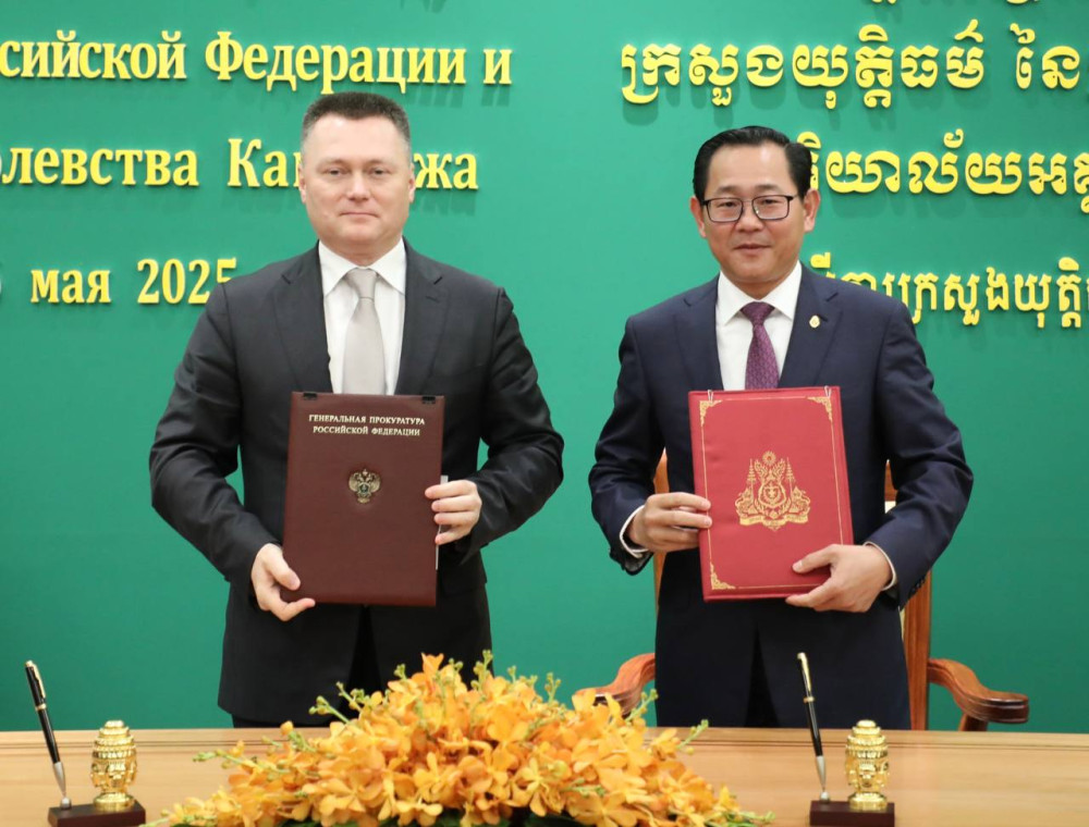 The MoU was inked in Phnom Penh on May 26 by H.E. Koeut Rith, Deputy Prime Minister and Minister of Justice of Cambodia, and H.E. Igor Krasnov, Prosecutor General of the Russian Federation, following their bilateral meeting.