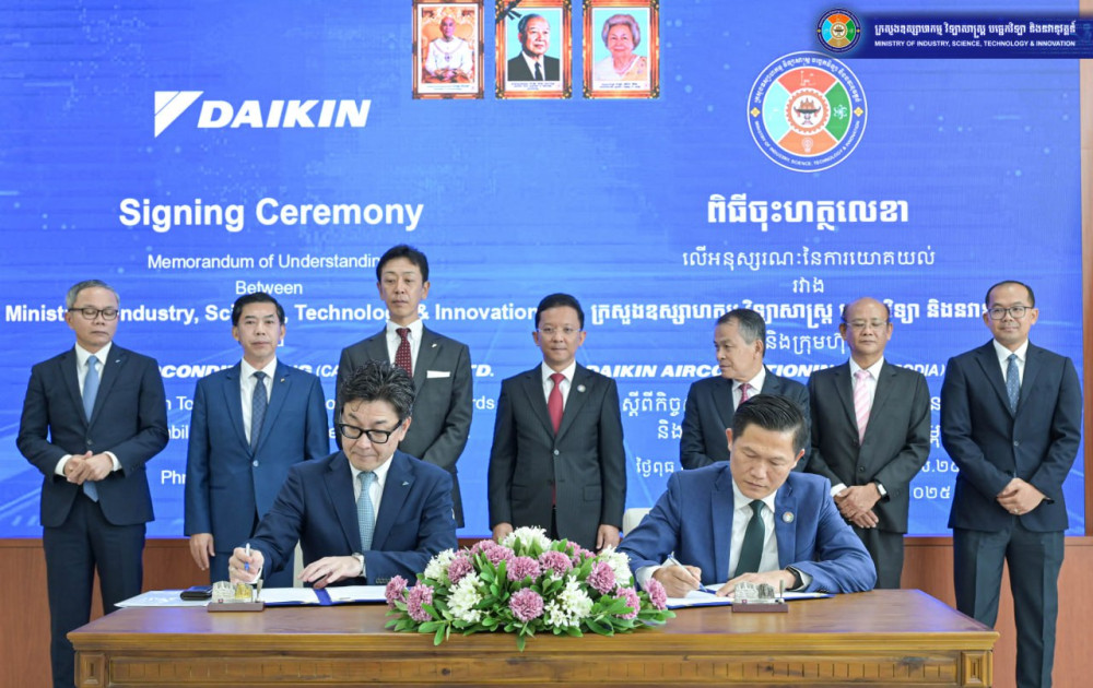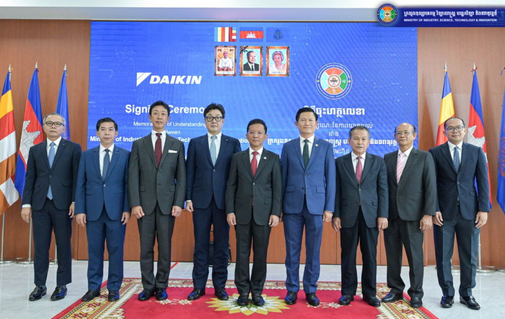 The Ministry of Industry, Science, Technology & Innovation (MISTI) has signed a Memorandum of Understanding (MoU) with Daikin Airconditioning (Cambodia) Co., Ltd. to strengthen air conditioning standards and promote sustainability in Cambodia’s Heating, Ventilation and Air Conditioning (HVAC) sector.