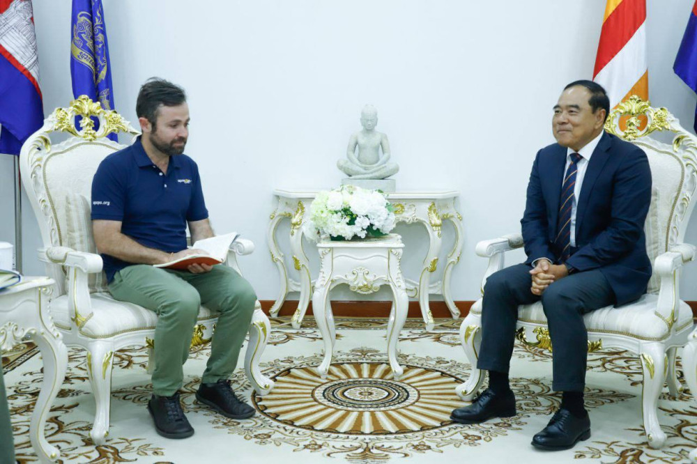 H.E. Ly Thuch, Senior Minister and the CMAA First Vice President, emphasised the support in a meeting with Director of APOPO in Cambodia Mr. Michael Heiman at the CMAA office on June 5.