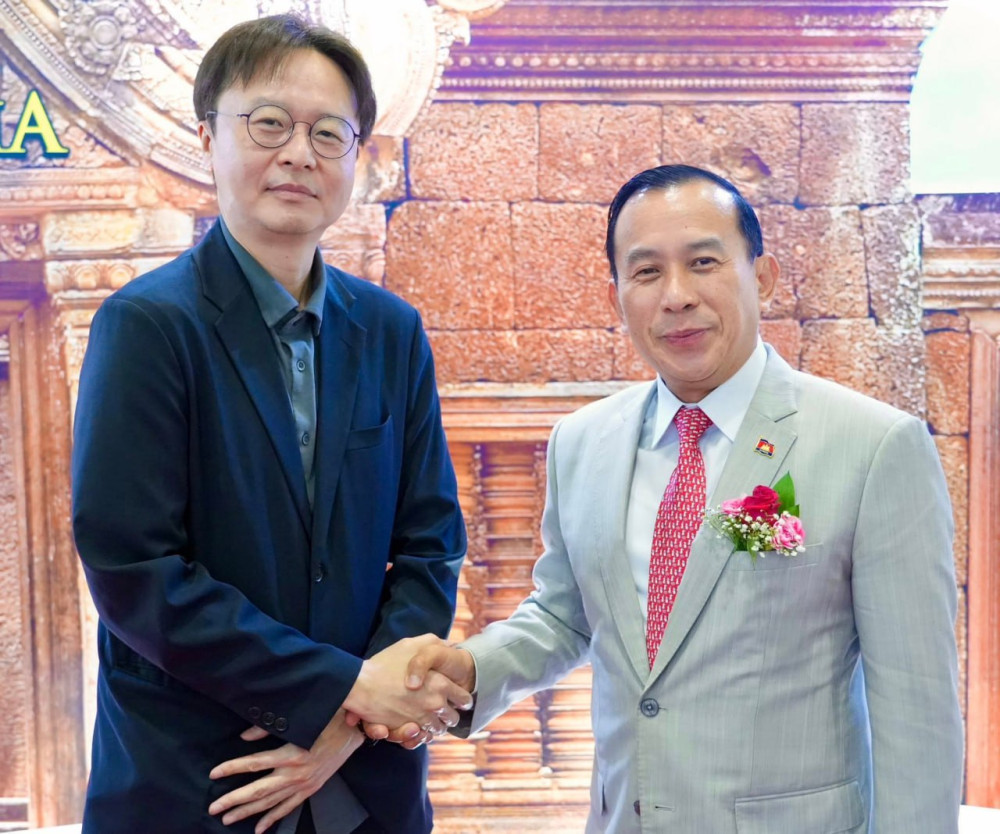 H.E. Huot Hak, Minister of Tourism, met with Mr. TAE Wook Lee, CEO and Group Head for Southeast Asia and Oceania of Korean Air, in Seoul on June 5 to discuss strengthening tourism cooperation between Cambodia and the Republic of Korea, as well as Korean Air’s planned visit to Cambodia.