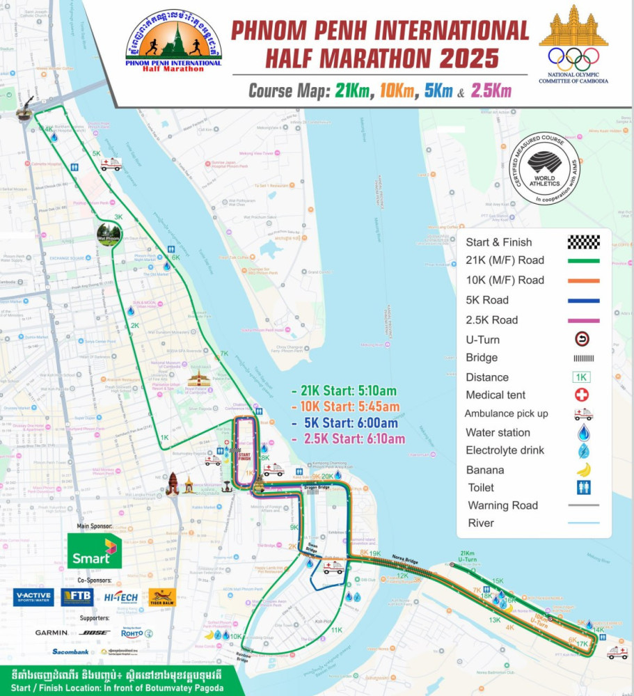 The Phnom Penh Capital Administration has announced temporary road closures along the riverside in the morning of June 15 to host the 13th Phnom Penh International Half Marathon 2025.