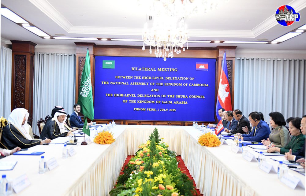 Samdech Maha Rathsapheathika Thipadei Khuon Sudary, President of the National Assembly of the Kingdom of Cambodia, met here on July 1 with Hon. Dr. Abdullah bin Mohammed bin Ibrahim Al-Sheikh, Speaker of the Shura Council of the Kingdom of Saudi Arabia.