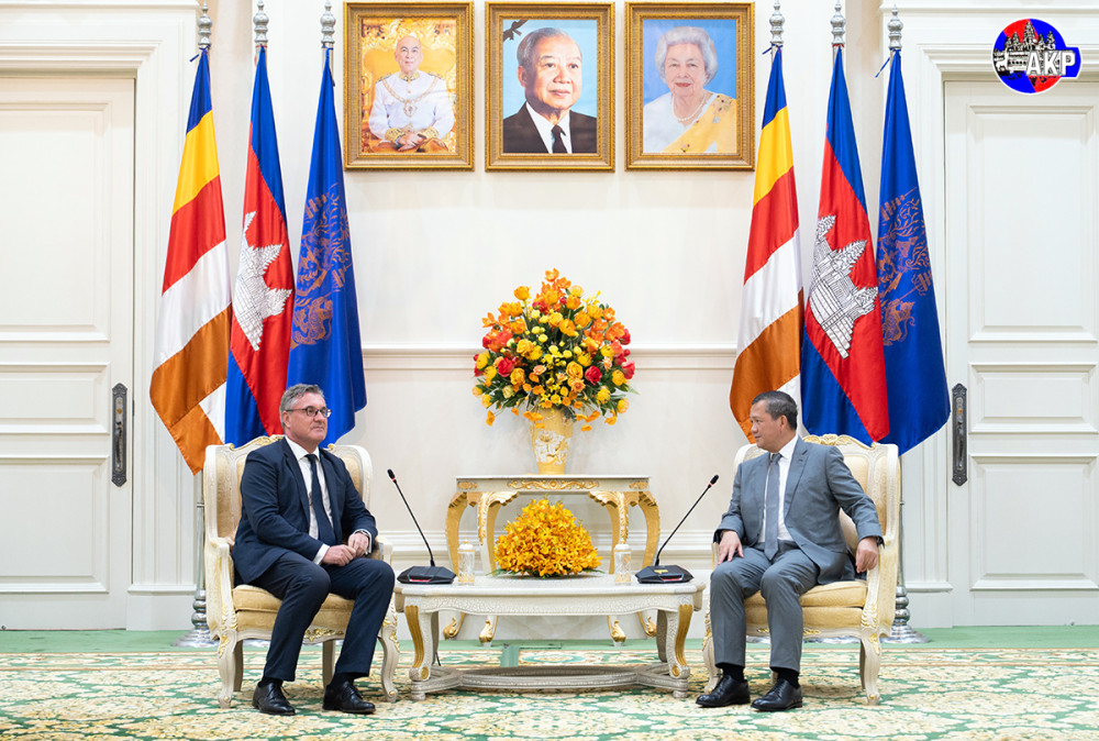 Samdech Moha Borvor Thipadei Hun Manet, Prime Minister of the Kingdom of Cambodia, received farewell courtesy calls this afternoon at the Peace Palace in Phnom Penh from the outgoing ambassadors of the Czech Republic, France, and Timor-Leste.