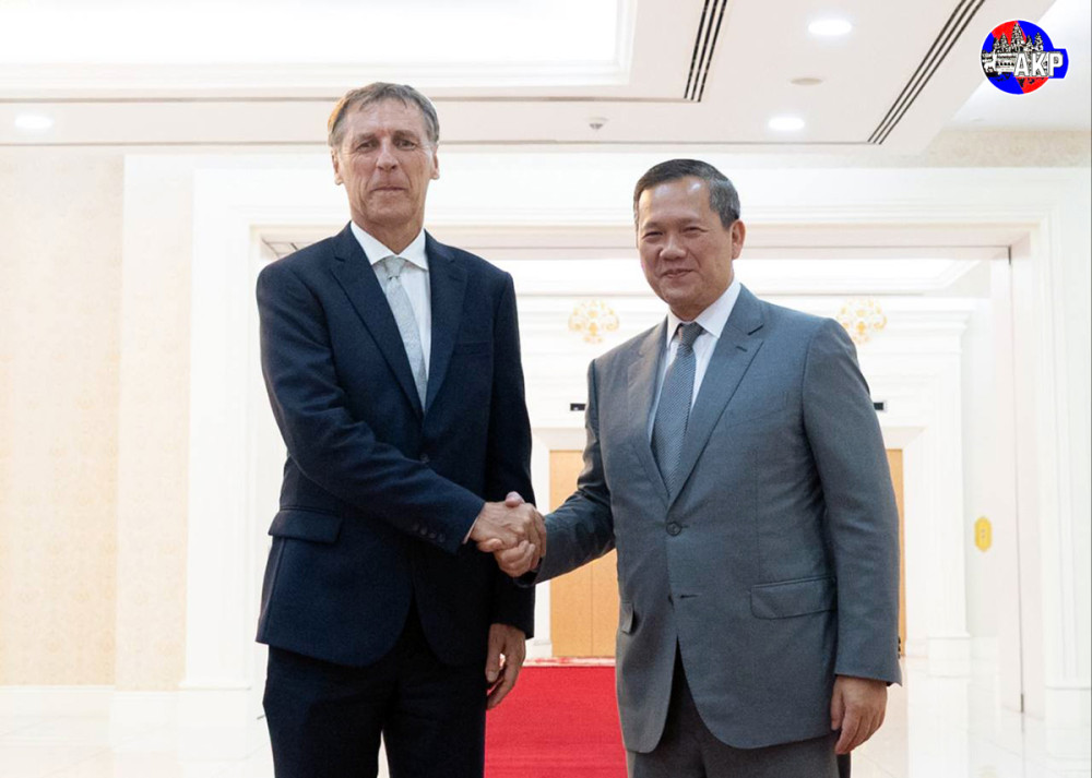 Cambodian Prime Minister Samdech Thipadei Hun Manet (R) and outgoing Ambassador of the Czech Republic H.E. Martin Vávra