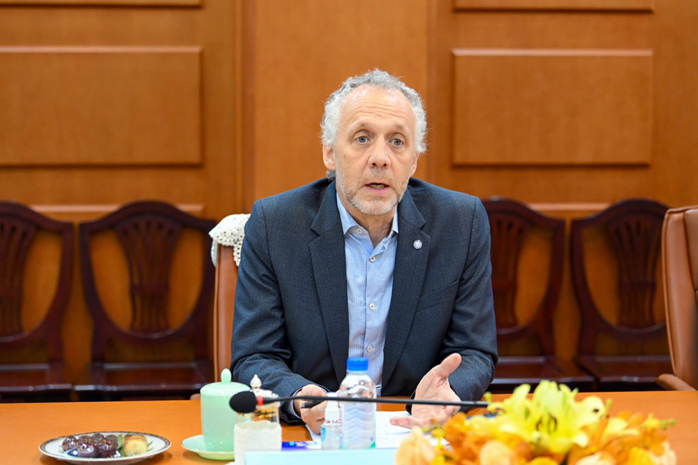 H.E. Dr. Chea Serey, Governor of the National Bank of Cambodia (NBC), met with Mr. Jo Scheuer, United Nations Resident Coordinator in Cambodia, on July 9 afternoon at the NBC headquarters in Phnom Penh.