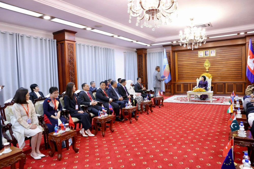 Samdech Maha Rathsapheathika Thipadei Khuon Sudary, President of the National Assembly of the Kingdom of Cambodia, received here at the National Assembly Palace this morning a courtesy visit from the heads of delegations attending the 16th ASEAN Inter-Parliamentary Assembly (AIPA), prior to the official opening ceremony.