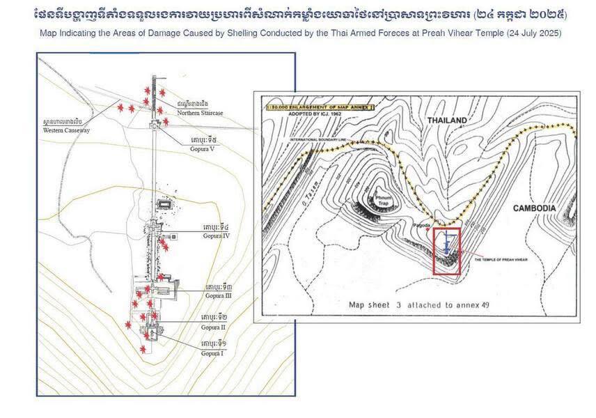 AKP Phnom Penh, July 26, 2025 -- Thai invading forces have reportedly used U.S.-made F-16 fighter jets and MK-82 bombs in their attacks targeting the Temple of Preah Vihear, a UNESCO World Heritage Site, said H.E. Heng Ratana, Director General of the Cambodian Mine Action Centre (CMAC).