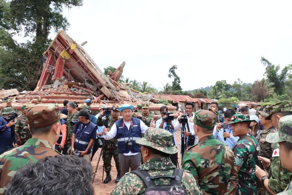 He briefed the military attaches at the border village of An Seh — which had been subjected to intense shelling by Thai forces — along with H.E. Suos Yara, Chairman of the National Assembly Commission on Foreign Affairs, International Cooperation and Media.