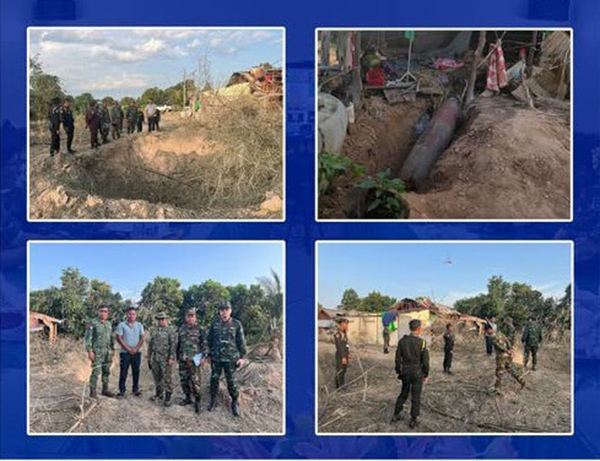 Following the meeting, Lt. Gen. Pov Heng accompanied the observers to the Thmar Daun area in Banteay Ampil district, Oddar Meanchey province, where they inspected sites where MK-84 bombs had been dropped by Thai fighter jets.