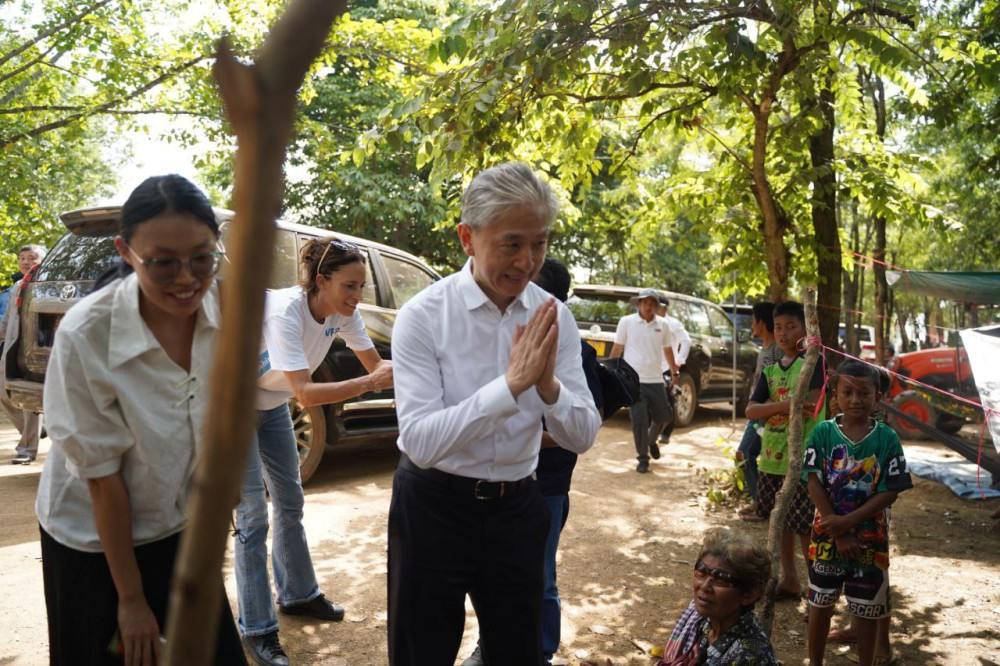 Ambassador Wang Wenbin was part of a delegation of foreign ambassadors and representatives from 22 countries and four international organisations who conducted a field visit yesterday to areas affected by the recent border clashes and to the displacement camps in Oddar Meanchey province.