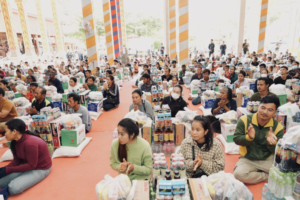 The Deputy Prime Minister, who also serves as Minister in Charge of the Office of the Council of Ministers and Head of the Royal Government Working Group for Kampong Thom province, was joined by his spouse and other senior officials. They were joined by Kampong Thom Governor H.E. Nuon Pharath at a temporary shelter at Indry Samvorak pagoda (Kampong Thom pagoda) in Stung Sen city, where nearly 10,000 individuals have taken refuge.