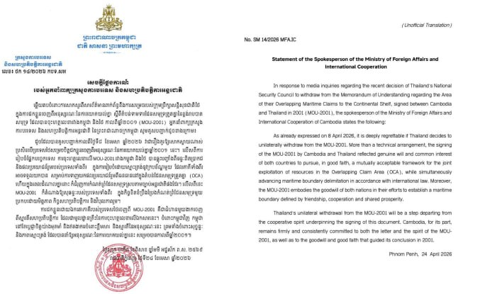 The update was provided by H.E. Lt. Gen. Maly Socheata, Under Secretary of State and Spokesperson for the Ministry of National Defence, during a press briefing held in Phnom Penh this morning.