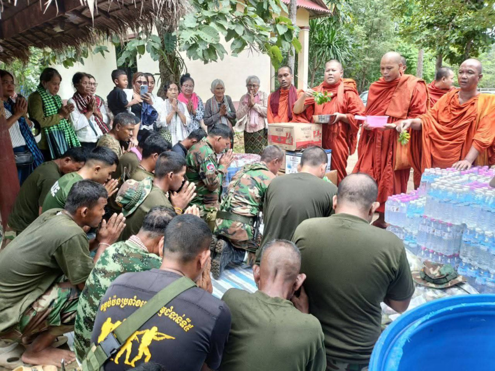 Buddhist monks and laypeople from Banteay Meanchey province have delivered essential supplies to soldiers stationed at the Tamone and Ta Krabey Temples, in a gesture of support for the troops defending Cambodia’s territorial integrity.