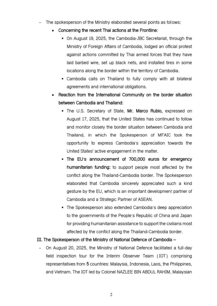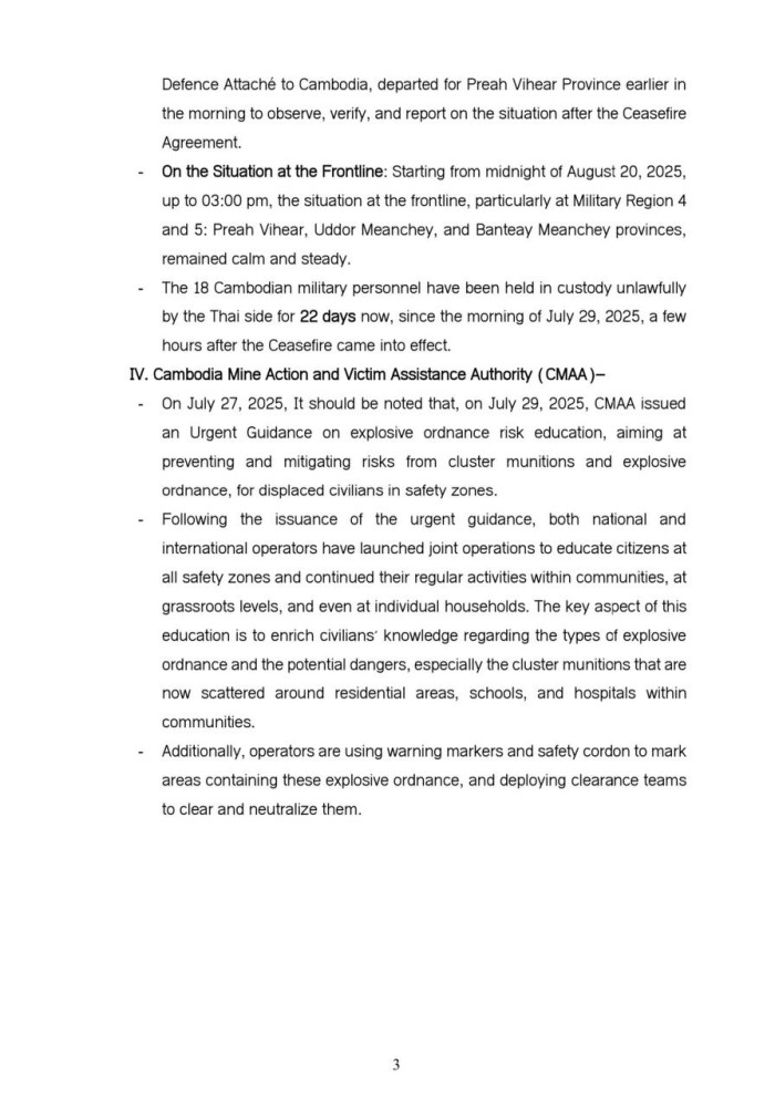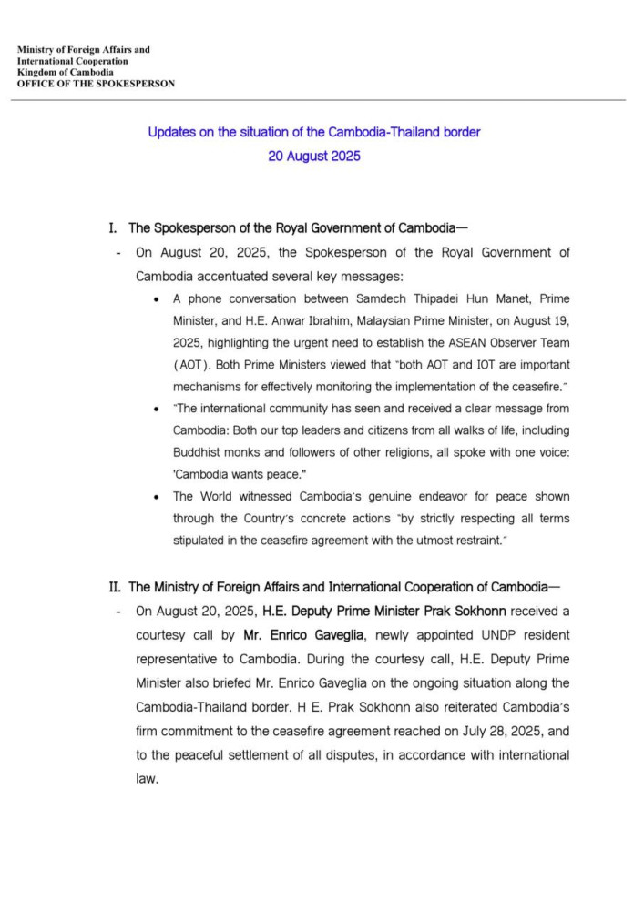 Updates on Situation along Cambodia-Thailand Border on Aug. 20, 2025