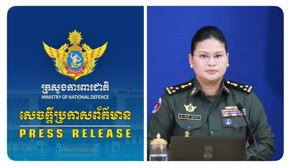 The Ministry of National Defence of the Kingdom of Cambodia has rejected the claim this afternoon by the official page of the Thai military and some Thai media outlets that “Cambodian forces fired 3 to 5 small-caliber shots into Thai territory with the intent to provoke in the area along the border between the two countries.”