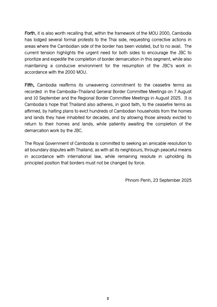 The Ministry of Foreign Affairs and International Cooperation of the Kingdom of Cambodia this morning issued a five-point statement responding to Thailand's assertion that Prey Chan villagers of Cambodia encroached on Thai territory to stage a protest.