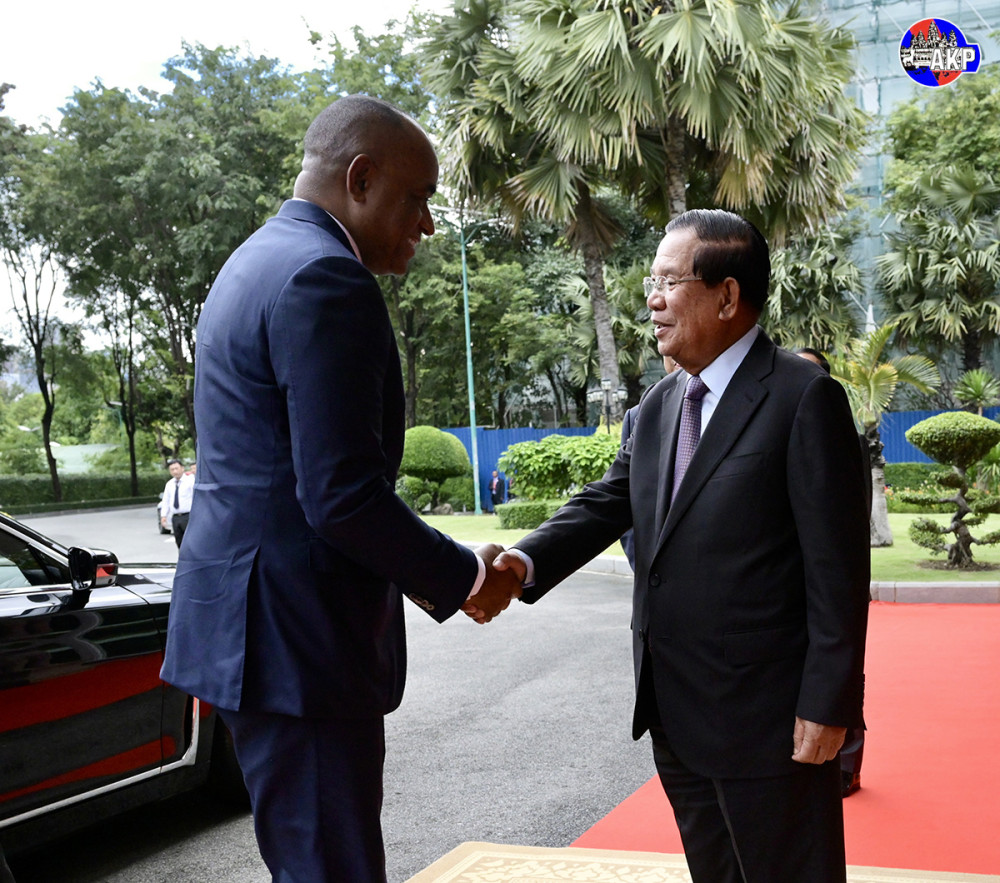 Acting Head of State of Cambodia, Samdech Akka Moha Sena Padei Techo Hun Sen, received Honourable Dr. Roosevelt Skerrit, Prime Minister of the Commonwealth of Dominica, at the Senate Palace in Phnom Penh this morning.