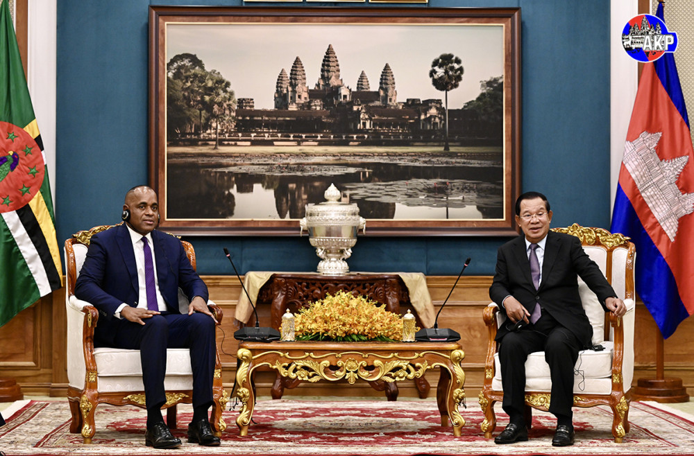 During the courtesy meeting, Samdech Techo Hun Sen highly valued the visit of Honourable Dr. Roosevelt Skerrit, considering it an important step in strengthening relations between the Kingdom of Cambodia and the Commonwealth of Dominica.