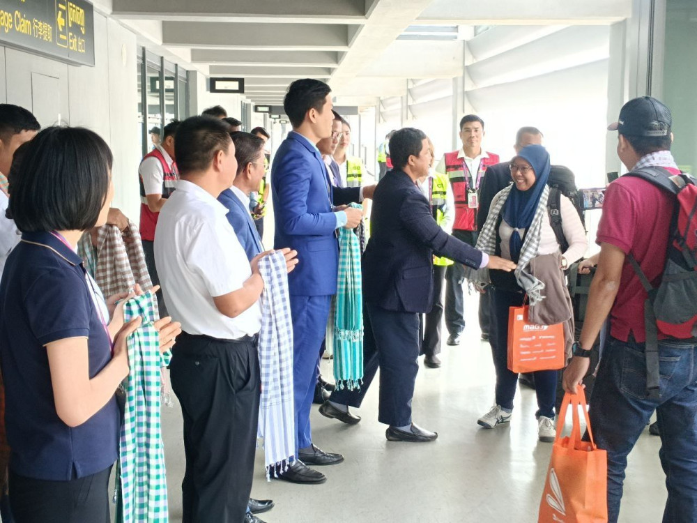 The arriving passengers and crew were warmly welcomed by Siem Reap Provincial Department of Tourism Director Mr. Thim Sereyvuth and officials from the State Secretariat of Civil Aviation.