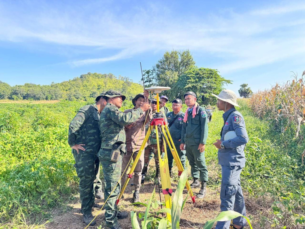 From Nov. 27 to Dec. 3, 2025, the Joint Cambodian-Thai Survey Team carried out aerial photography using drones to produce a photomap along the border section between Posts 52 and 59. The team successfully completed approximately 6.4 kilometres of the planned work, equivalent to about 76 percent of the total photomap requirement.