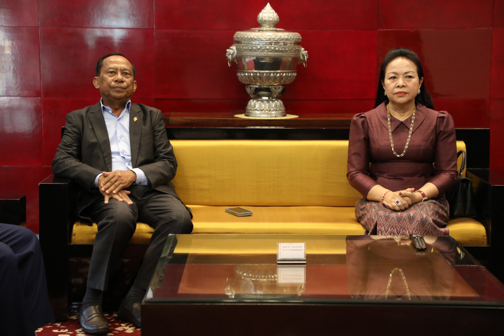 National Assembly Second Vice President H.E. Vong Sauth and fellow lawmaker H.E. Keo Piseth offered food, clothing and other provisions Sunday to people displaced by the conflict with Thailand in Phnom Srok district in Banteay Meanchey province.