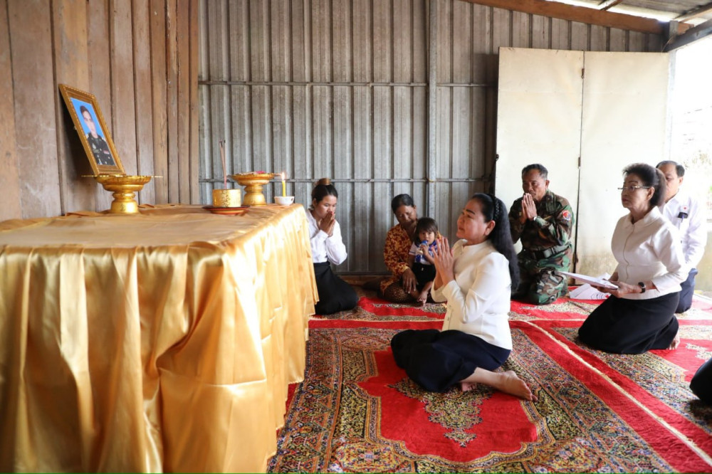 Samdech Kittiprittpundit Bun Rany Hun Sen, President of the Cambodian Red Cross (CRC), paid her last tribute on Monday morning to a senior army officer killed in the line of duty, offering condolences and financial support to the bereaved family in Pursat province.