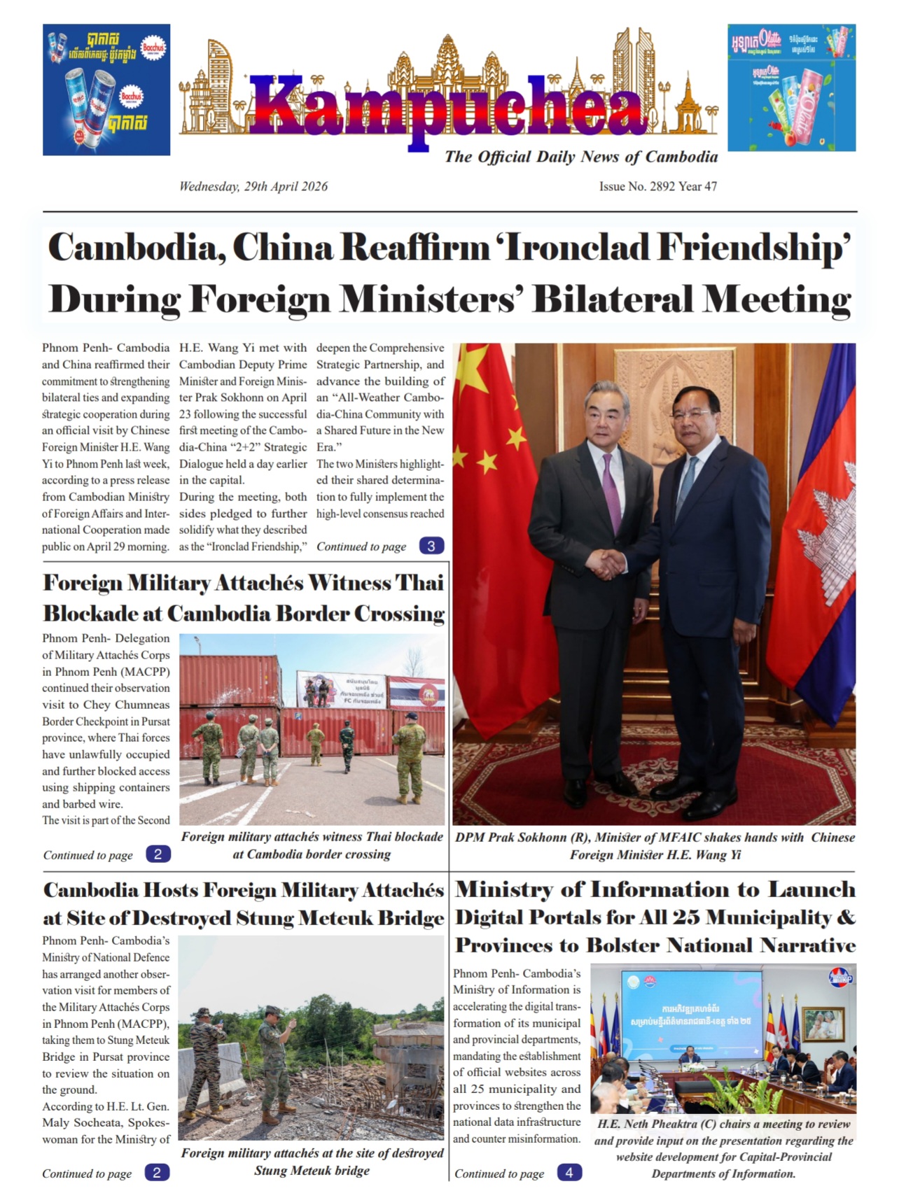 Both sides also discussed bilateral relations and Cambodia’s participation in the upcoming “One Health Summit.”