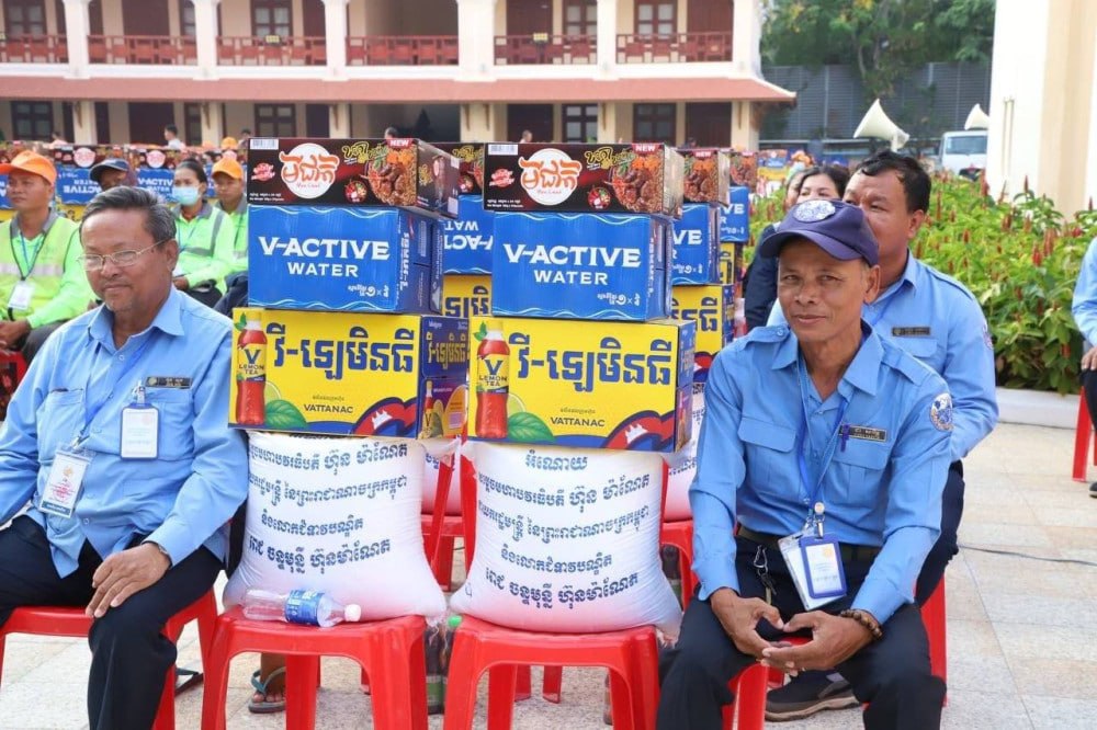 A total of 706 personnel from both the public and private sectors received care packages consisting of 25kg of rice, canned goods, beverages, and a cash allowance of 50,000 Riel roughly (US$12.5). The donations were provided through the patronage of Acting Head of State Samdech Akka Moha Sena Padei Techo Hun Sen, Cambodian Red Cross President Samdech Kittiprittpundit Bun Rany Hun Sen, Prime Minister Samdech Moha Borvor Thipadei Hun Manet and the First Lady Lok Chumteav Dr. Pich Chanmony.