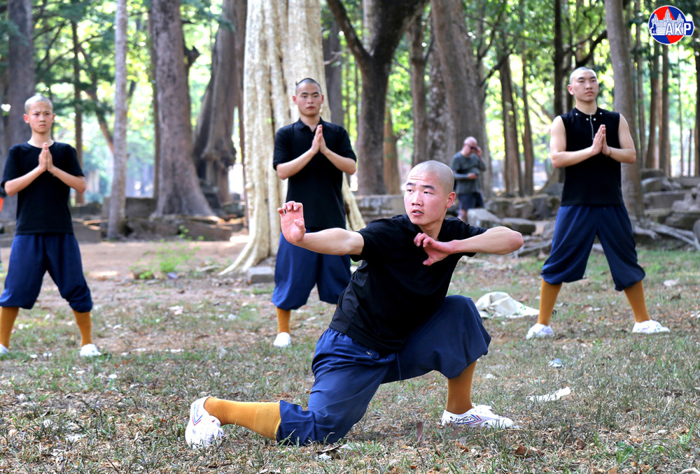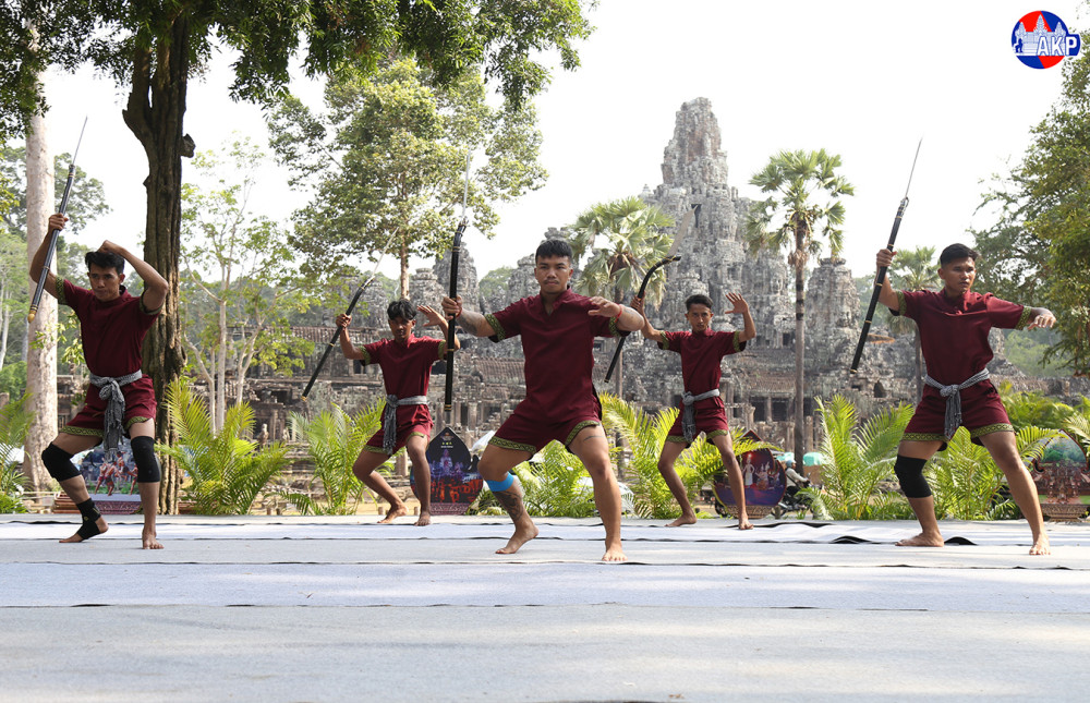 A group of Shaolin monks and Lbokator athletes rehearse this afternoon to prepare for the “Cambodia-China Martial Arts Performance” to be held from 7:00 a.m. on April 30, 2026 at the northern compound of Bayon Temple, Siem Reap province.